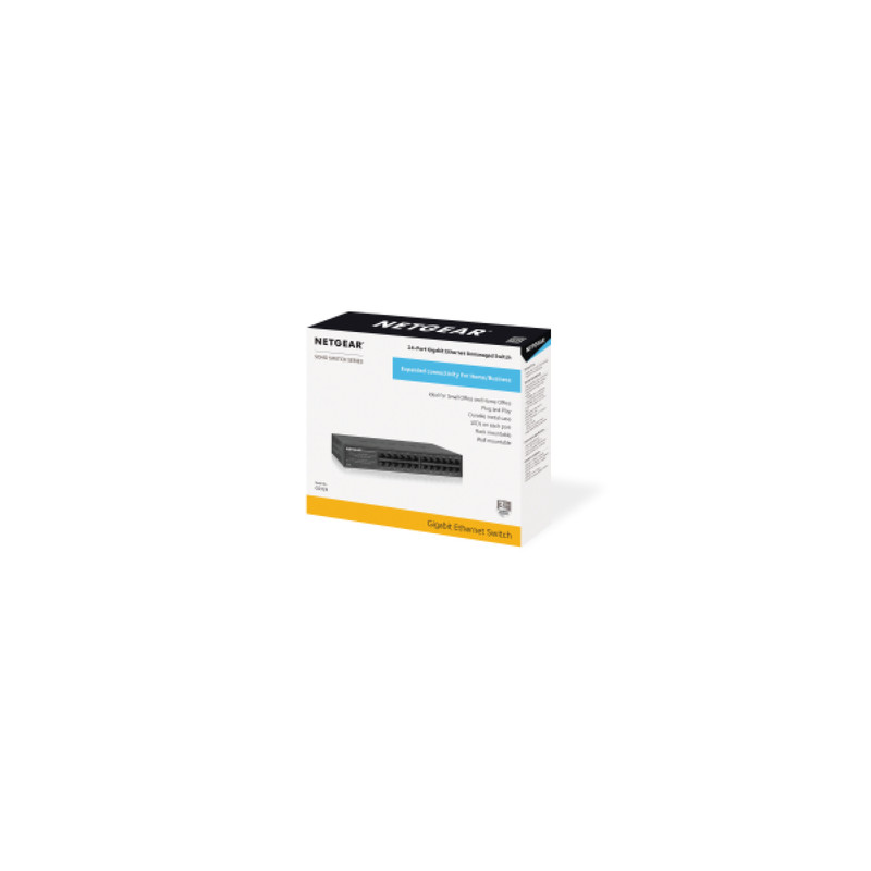NETGEAR GS324, Neupravljano, Gigabit Ethernet (10/100/1000), Montaža u poslužiteljski ormar, Mogućnost zidne montaže