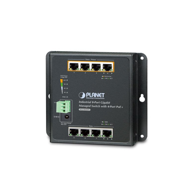 Planet Industrial 8-Port 10 100 1000T Wall-mount Managed Switch with 4-Port PoE (-40~75 degrees C)