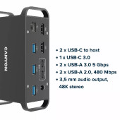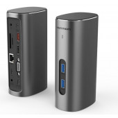 USB-C 12 v 1, RGB, USB-C 3.1, 3x USB-A, USB-C PD100W, 2x HDMI 4K@60Hz, DP 4K@60Hz, SD+TF, RJ45, AUX, Alumi