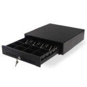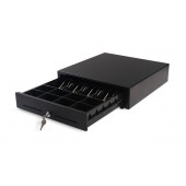 Ladica za novac MS 410, 5 novčanice/ 8 kovanice, Epson standard RjJ11, RJ12, 410(Š)x420(D)x100(V), metalna konstrukcija, 7,6kg, 6V/9V/12/24V crna