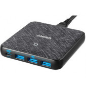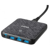 2x USB-C, USB-A, GaN, sivo crni