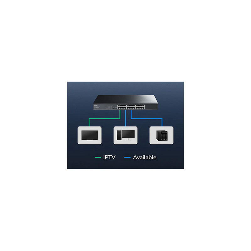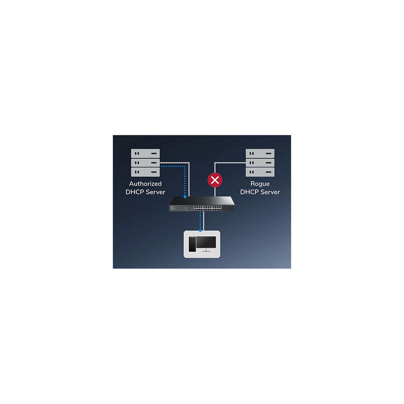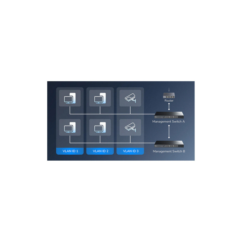 L2 funkcije: IGMP njuškanje, sprječavanje petlji, DHCP njuškanje, STP/RSTP, LLDP, MTU VLAN, VLAN temeljen na portu, 802.1Q VLAN, Voice VLAN, DSCP QoS, 802.1p QoS, QoS temeljen na portu