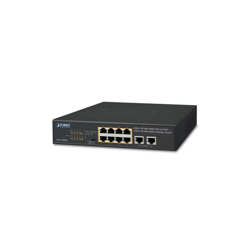 Planet 8-Port 1GbE RJ45 802.3at PoE 2-Port 1GbE RJ45 Desktop Switch (120 watts)
