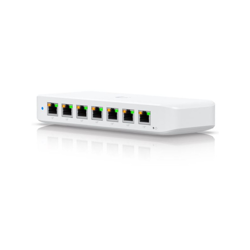 Ubiquiti UniFi switch USW-Ultra-210W - A compact, 8-port, Layer 2 GbE PoE switch with versatile mounting options. The switch has 1 PoE in port and 7 PoE out ports with PoE 802.3af at with max wattage 30W per port. Switch is managed by UniFi network providing central management and cloud access.