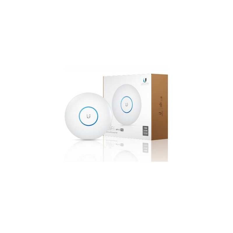 Ubiquiti Networks UAP-AC-PRO, UniFi AP AC1750 Class Pro. 802.11ac 3x3 Mimo Dual Radio Access Point for Indoor Outdoor Use. 2.4 GHz Speed 450 Mbps. 5 GHz Speed 1300 Mbps. Range up to 122 m. Power: 48V PoE 802.3af PoE 802.3at PoE . 48V, 0.5A PoE Gigabit Adapter included. 2x RJ45 Gigabit Ethernet Ports. (1) USB 2.0 Port. (3) Dual-Band Antennas, 3 dBi Each. Max TX Power 22dBm. Includes Ceiling Mount Wall Mount Kit. Dimension 196.7 x 196.7 x 35 mm