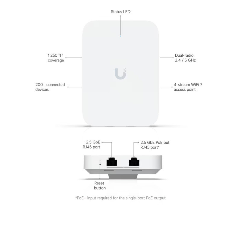- Zidna WiFi? 7 pristupna točka s 4 prostorna toka i integriranim 2,5 GbE PoE preklopnikom dizajnirana za ugostiteljska okruženja.