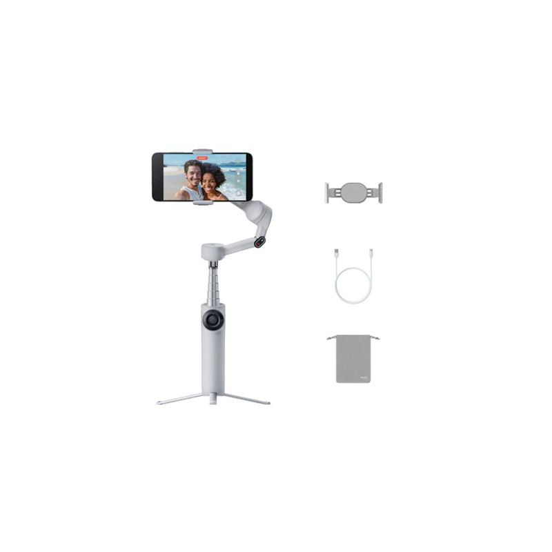 Napredni gimbal stabilizator za pametne telefone koji omogućuje izuzetno glatke i profesionalne video snimke bez podrhtavanja. Namijenjen je content creatorima, vlogerima, influencerima i svima koji žele jednostavno i stabilno snimati video s mobitela; 3-osna mehanička stabilizacija (Pan/Tilt/Roll) — uklanja podrhtavanje i omogućuje vrlo glatke snimke čak i u pokretu; Deep Track 4.0 AI tracking — pametno prati osobu ili objekt u kadru za precizno automatsko fokusiranje; Ugrađeni selfie stick i mini tripod; Do 10 sati rada baterije; USB-C punjenje; Kompaktan, sklopiv dizajn — idealan za nošenje u torbi ili ruksaku; Kompatibilnost s Insta360 aplikacijom (iOS & Android); U paketu: Insta360 Flow 2 stabilizator, Magnetni držač telefona, USB-C kabel za punjenje, Zaštitna torbica