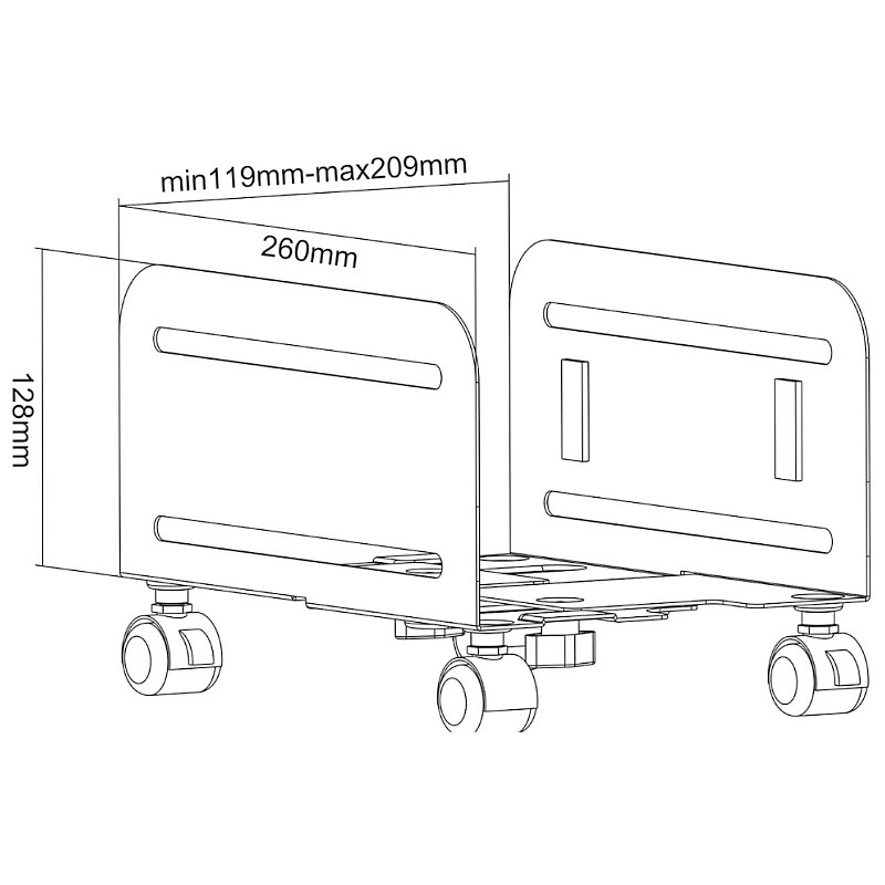• Savitljivi stalak za PC s podesivom širinom od 119 do 209 mm • Stvara više prostora na stolu jer se postavlja ispod stola • Stabilna metalna konstrukcija s visokom stabilnošću nagiba • Podesiv za širinu PC-a od 119 do 209 mm • Fleksibilnija uporaba • 2 čvrsta kotačića s mogućnošću zaključavanja • Boja: Crna • Nosivost: 10 kg • Maksimalna duljina ruke (širina): 119 - 209 mm • Podesivost: Mehanička