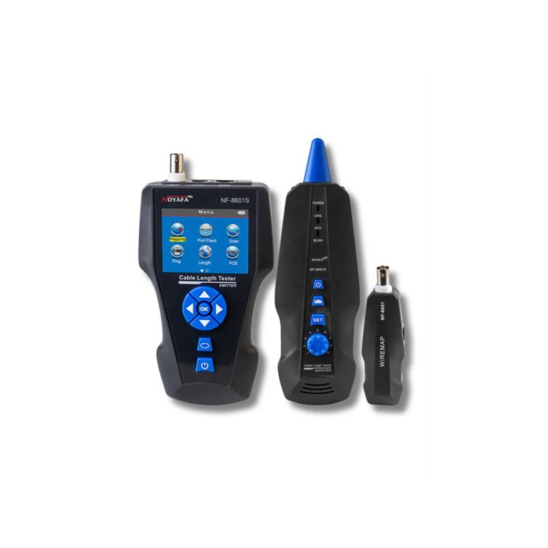 Noyafa NF-8601S TDR Cable Tracer Tester with PoE Ping for RJ45, RJ11, BNC, Metal Cables - CAT5 6 7 tester, TDR test: With TDR technology, 500m max (1640ft) length measurement for RJ11, RJ45, Coaxial, and power cables (only 2% error!). When faults exist, the NF-8601S TDR meter displays the distance to the fault, Ethernet cable tester, Network toner: Toner probe with complete AC interference rejection to trace ethernet cables. Three modes are available for fast and accurate cable tracing: high frequency PoE switch low frequency, Port blinking, Ping test, Non-Contact Voltage Tester: Toner probe with NCV detector (90-1000V). One tap to tell if electricity runs through an object without touching it