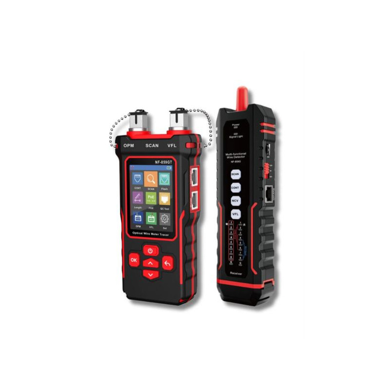 NOYAFA NF-859GT Ethernet Fiber Multi Cable Tester with a Unique Receiver Integrating a Variety of Functions of Alignment Test, VFL, PoE - Wire Detection Function Anti-interference mode ordinary mode(used with other models), Alignment Test Local alignment test and remote alignment test, Crimping Test To test whether the registered jacks RJ11and RJ45 are crimped properly, PoE Power supply wire core, mid-span and end-span, VFL 10mw