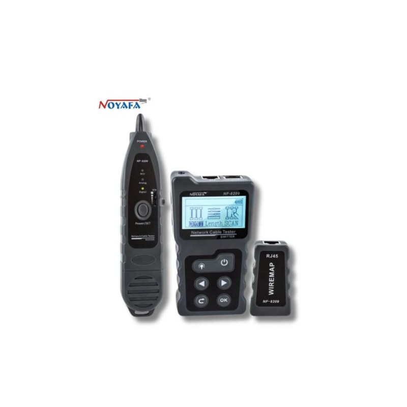 NOYAFA NF-8209 - NOYAFA NF-8209 Advanced Network Cable Tester with Tone Tracer - Network Toner: Trace ethernet cables with a tone generator and probe; Continuity Check: Plug and test common connection issues like open, short, and cross for STP and UTP cables. Easily identify the fault type without further damaging the cable, Wire Length Meter: Measure any CAT5e, CAT6, and CAT6a cables, PoE Test, Port Blinking: Identify a target port on a switch, modem, router, and other Ethernet device via the blinking rate, Voltage Detector: Installed with a Non-contact voltage detector, NF-8209 ensures maximized safety when starting to connect cables