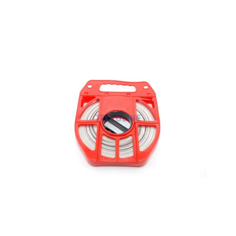 NFO Steel tape, stainless steel C201, 50 m (20x0.7 mm) - used to create solid fastening bands in many industries Compact housing with a handle that facilitates unwinding and carrying the tape Installation of overhead network components such as brackets, handles, hooks Possible use in various industries: telecommunications, energy, mining, road construction, transport, agriculture, forestry, construction, industry (chemical, petrochemical, military, electrical, automotive)