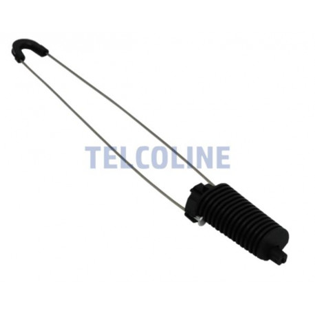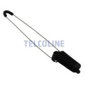 NFO Clamp for round cables, diameter 8-12 mm, 16 kN - designed for hanging round self-supporting cables high quality thermoplastic and mechanical resistance as well as weather conditions, resistant to UV Minimum breaking load: 17.5 kN Lenth length with cable: 700 mm Length of the body: 200 mm