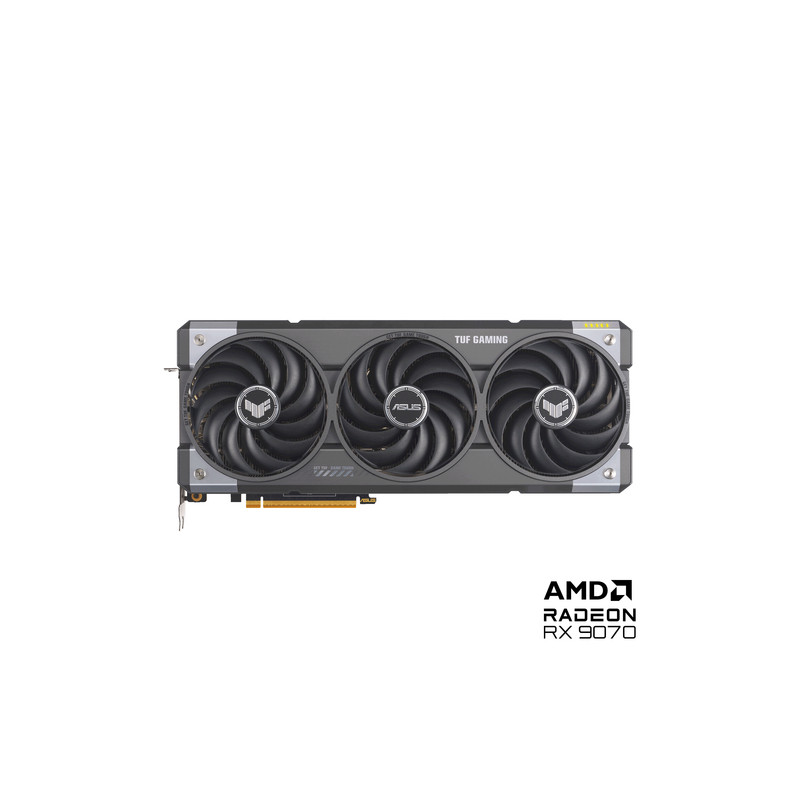 ASUS TUF Gaming TUF-RX9070-O16G-GAMING. Skupina kojoj pripada grafički procesor: AMD, Grafički procesor: Radeon RX 9070. Memorija diskretne grafičke kartice: 16 GB, Vrsta memorije grafičke kartice: GDDR6, Memorijska sabirnica: 256 bit. Maksimalna razlučivost: 7680 x 4320 pikseli. Inačica DirectX-a: 12 Ultimate, Inačica OpenGL-a: 4.6. Tip sučelja: PCI Express 5.0. Tip hlađenja: Aktivno, Broj ventilatora: 3 ventilatori, Boja osvjetljenja: Multi
