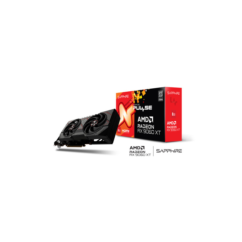 Sapphire PULSE AMD Radeon RX 9060 XT 8GB GPU, Radeon RX 9060 XT, 8 GB, GDDR6, 128 bit, 7680 x 4320 pikseli, PCI Express x16 5.0