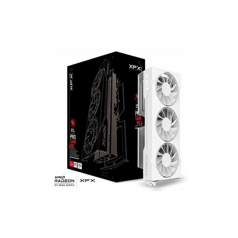 XFX RX-96TS316W7. Skupina kojoj pripada grafički procesor: AMD, Grafički procesor: Radeon RX 9060 XT, Frekvencija procesora: 1900 MHz. Memorija diskretne grafičke kartice: 16 GB, Vrsta memorije grafičke kartice: GDDR6, Memorijska sabirnica: 128 bit. Inačica DirectX-a: 12.0. Tip sučelja: PCI Express x16 5.0. Tip hlađenja: Aktivno, Broj ventilatora: 3 ventilatori