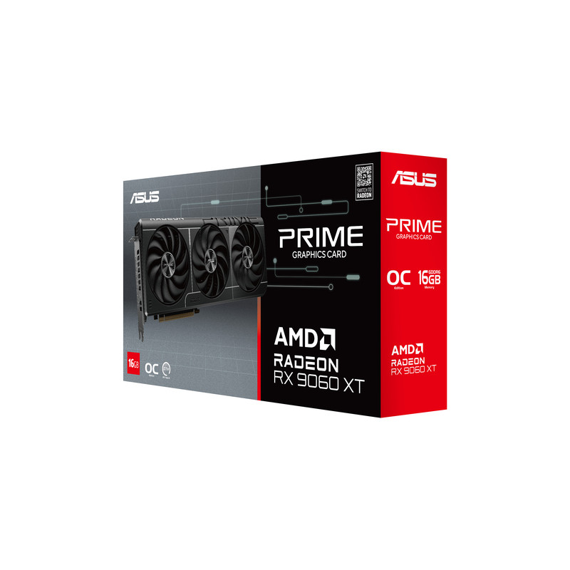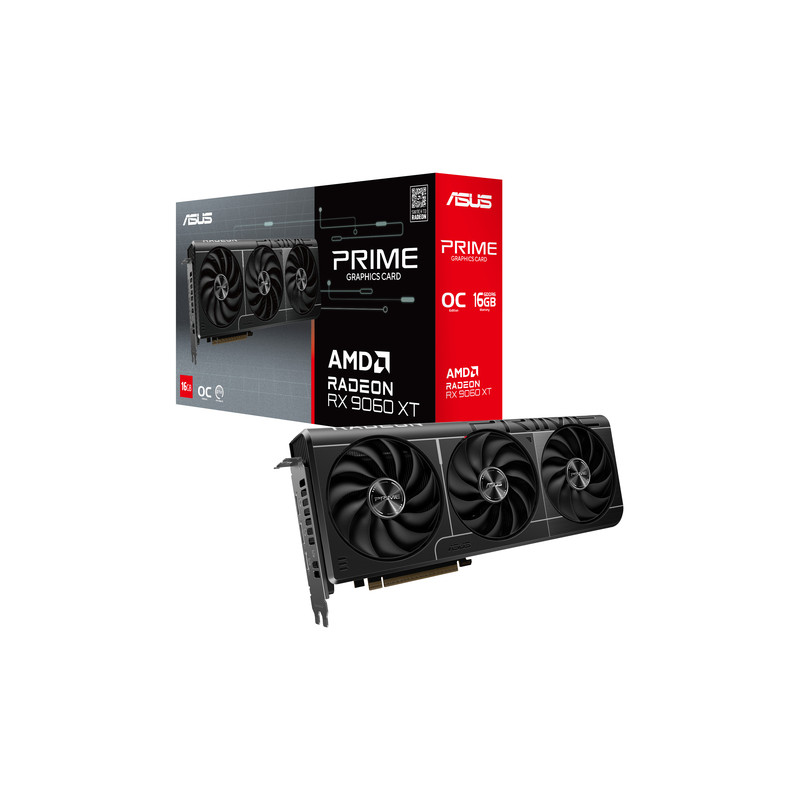 ASUS Prime Radeon RX 9060 XT O16G. Skupina kojoj pripada grafički procesor: AMD, Grafički procesor: Radeon RX 9060 XT. Memorija diskretne grafičke kartice: 16 GB, Vrsta memorije grafičke kartice: GDDR6, Memorijska sabirnica: 128 bit. Maksimalna razlučivost: 7680 x 4320 pikseli. Inačica OpenGL-a: 4.6. Tip sučelja: PCI Express 5.0. Tip hlađenja: Aktivno, Broj ventilatora: 3 ventilatori