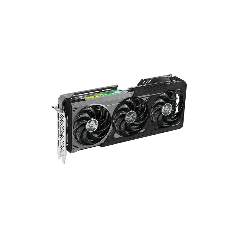 Asrock Radeon RX 9070 XT Steel Legend Dark. Skupina kojoj pripada grafički procesor: AMD, Grafički procesor: Radeon RX 9070 XT, Frekvencija procesora: 2400 MHz. Memorija diskretne grafičke kartice: 16 GB, Vrsta memorije grafičke kartice: GDDR6, Memorijska sabirnica: 256 bit. Maksimalna razlučivost: 7680 x 4320 pikseli. Inačica DirectX-a: 12 Ultimate, Inačica OpenGL-a: 4.6. Tip sučelja: PCI Express x16 5.0. Tip hlađenja: Aktivno, Broj ventilatora: 3 ventilatori, Boja osvjetljenja: Multi