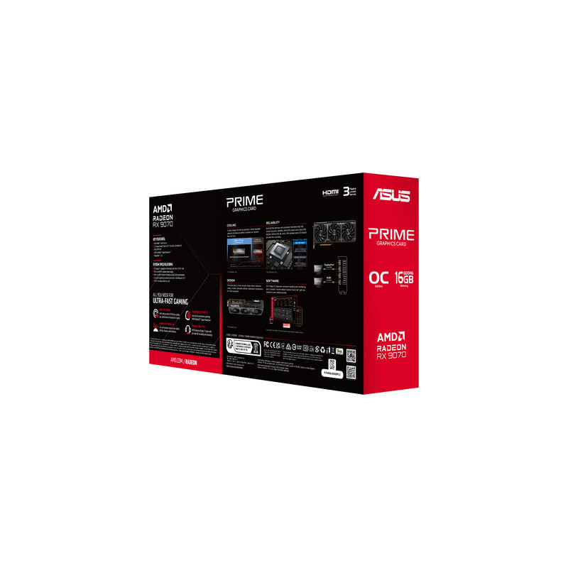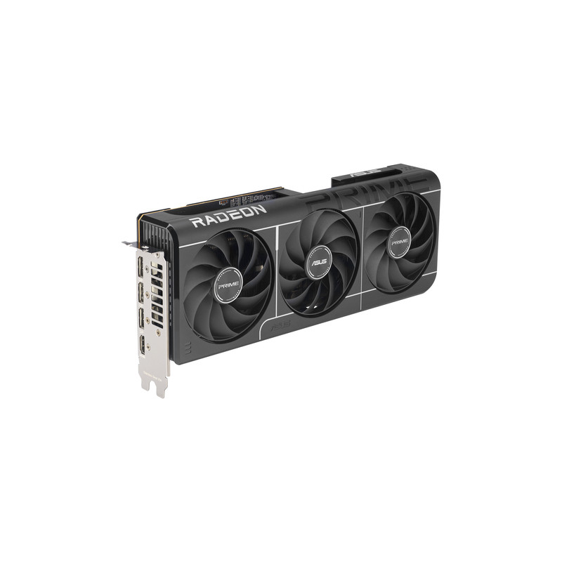 ASUS Prime -RX9070-O16G-EVO. Skupina kojoj pripada grafički procesor: AMD, Grafički procesor: Radeon RX 9070. Memorija diskretne grafičke kartice: 16 GB, Vrsta memorije grafičke kartice: GDDR6, Memorijska sabirnica: 256 bit. Maksimalna razlučivost: 7680 x 4320 pikseli. Inačica DirectX-a: 12 Ultimate, Inačica OpenGL-a: 4.6. Tip sučelja: PCI Express 5.0. Tip hlađenja: Aktivno, Broj ventilatora: 3 ventilatori