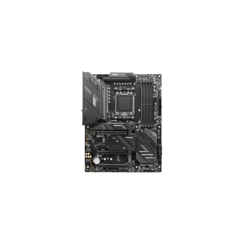 MSI MAG X670E TOMAHAWK WIFI. Proizvođač procesora: AMD, Utor za procesor: Utor AM5, Kompatibilni procesori: AMD Ryzen™ 7. Podržani tipovi memorije: DDR5-SDRAM, Maksimalna količina interne memorije: 128 GB, Memorijski kanali: Dvokanalni. Podržana sučelja pogona za pohranu: M.2, SATA, RAID tipovi: 0, 1, 10. Vrsta Ethernet sučelja: 2.5 Gigabit Ethernet, LAN kontroler: Realtek RTL8125-BG, Vrhunski Wi-Fi standard: Wi-Fi 6E (802.11ax). Komponenta za: PC/osobno računalo, Dimenzije matične ploče: ATX, Obitelj čipseta matične ploče: AMD