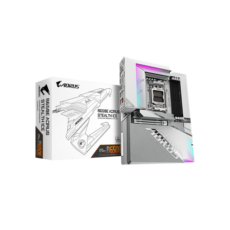 GIGABYTE B650E AORUS STEALTH ICE is based on the AMD-B650 chipset and supports AMD processors for the AM5 socket