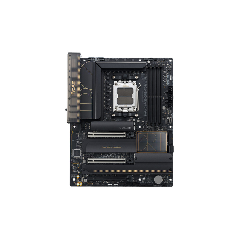 ASUS ProArt X870E-CREATOR WIFI. Proizvođač procesora: AMD, Utor za procesor: Utor AM5, Podržani procesorski utori: Utor AM5. Podržani tipovi memorije: DDR5-SDRAM, Maksimalna količina interne memorije: 192 GB, Tip memorijskih utora: DIMM. Podržana sučelja pogona za pohranu: M.2, SATA III, Podržani tipovi pogona: HDD & SSD, RAID tipovi: 0, 1, 10, 5. Vrsta Ethernet sučelja: 2.5 Gigabit Ethernet, 10 Gigabitni Ethernet, Vrhunski Wi-Fi standard: Wi-Fi 7 (802.11be), Wi-Fi standarde: Wi-Fi 7 (802.11be). Komponenta za: PC/osobno računalo, Dimenzije matične ploče: ATX, Obitelj čipseta matične ploče: AMD