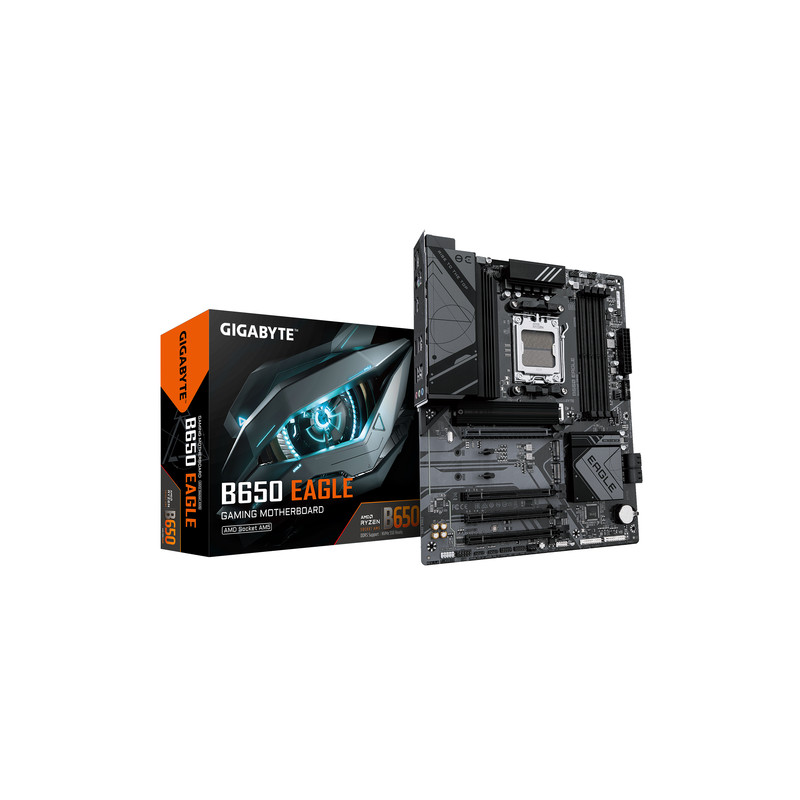 GIGABYTE B650 EAGLE. Proizvođač procesora: AMD, Utor za procesor: Utor AM5, Kompatibilni procesori: AMD Ryzen 7000 Series. Podržani tipovi memorije: DDR5-SDRAM, Maksimalna količina interne memorije: 192 GB, Tip memorijskih utora: DIMM. Podržana sučelja pogona za pohranu: M.2, PCI Express 4.0, SATA III, Podržani tipovi pogona: HDD & SSD, RAID tipovi: 0, 1, 10. Maksimalna razlučivost: 4096 x 2160 pikseli. Tip USB poveznika: USB Tip-A, USB Tip-C