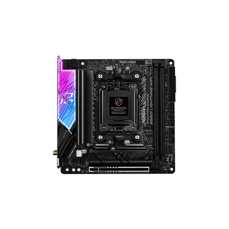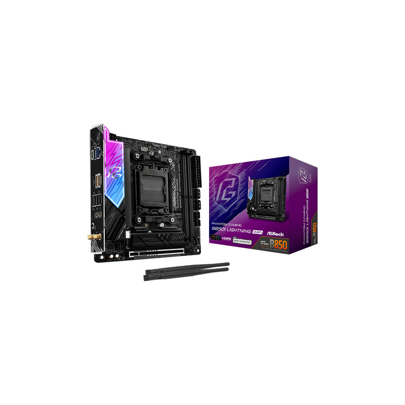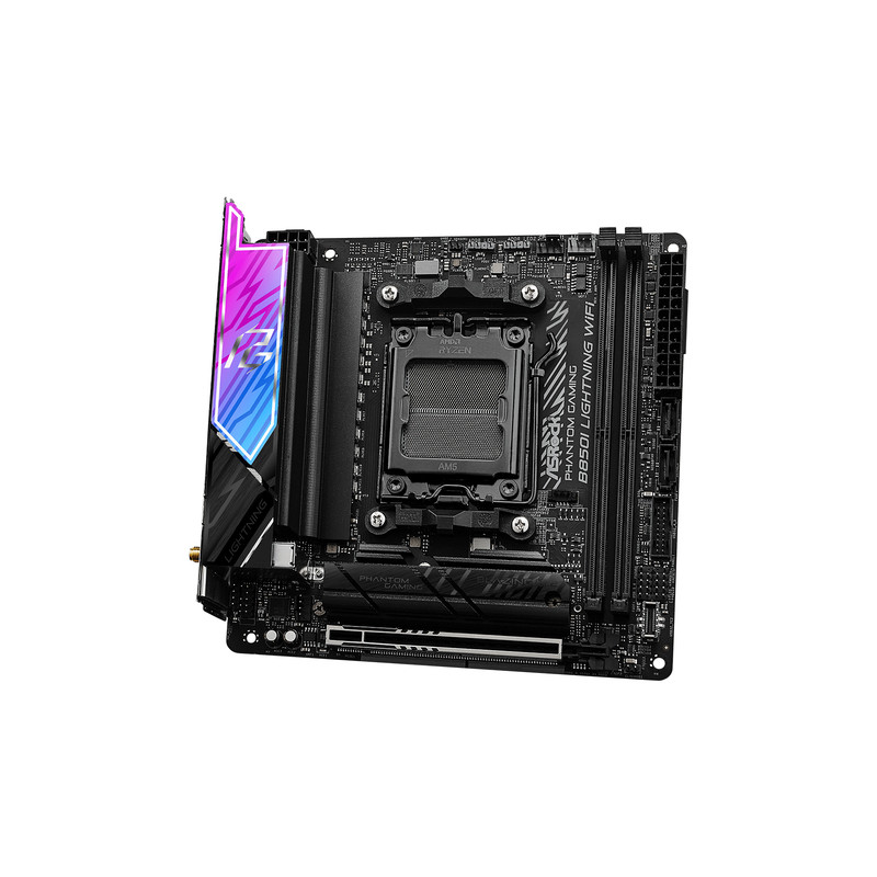 Asrock Phantom Gaming B850I Lightning WiFi, AMD, Utor AM5, AMD Ryzen 7000 Series, AMD Ryzen 8000 Series, AMD Ryzen 9000 Series, Utor AM5, DDR5-SDRAM, 128 GB