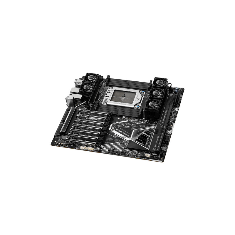 Asrock WRX90 WS EVO. Proizvođač procesora: AMD, Utor za procesor: Socket sTR5, Kompatibilni procesori: AMD Ryzen Threadripper 1000 Series. Podržani tipovi memorije: DDR5-SDRAM, Maksimalna količina interne memorije: 2 TB, Tip memorijskih utora: DIMM. Podržana sučelja pogona za pohranu: M.2, SATA III, RAID tipovi: 0, 1, 10. Verzija DisplayPort-a: 1.1a. Vrsta Ethernet sučelja: 10 Gigabitni Ethernet, LAN kontroler: Intel X710-AT2