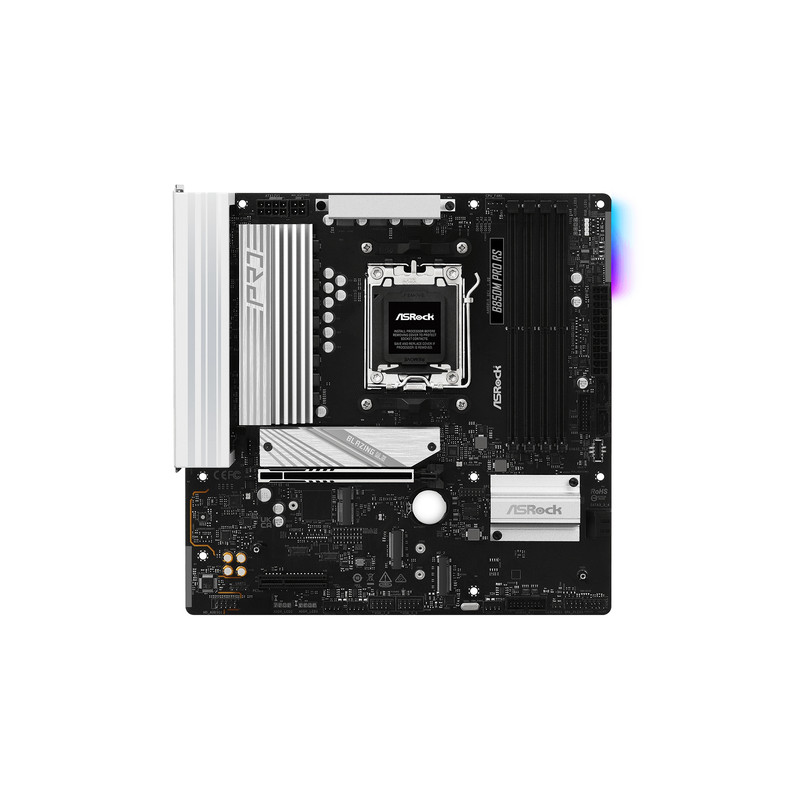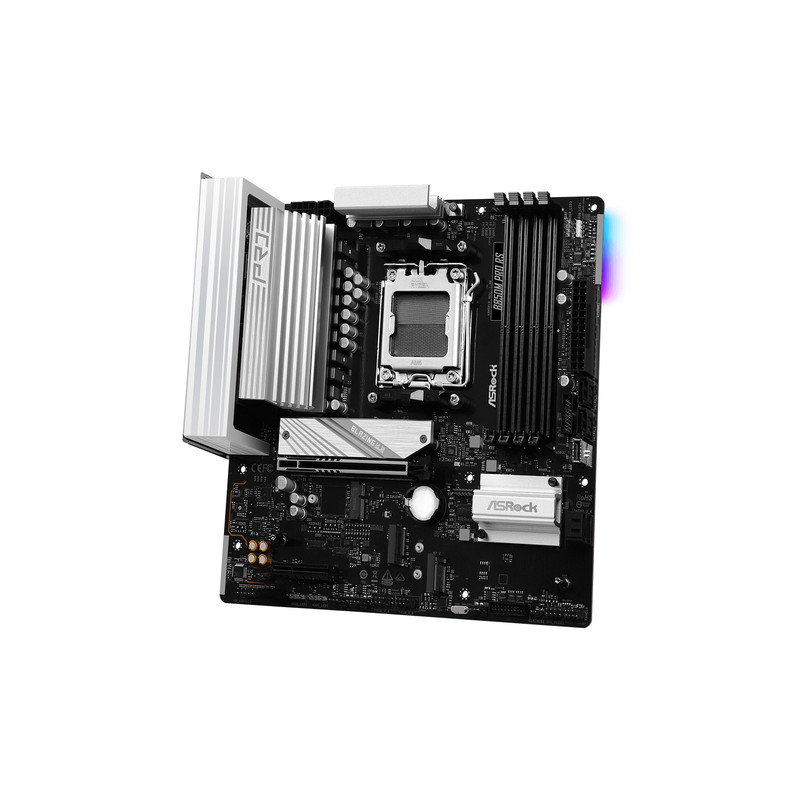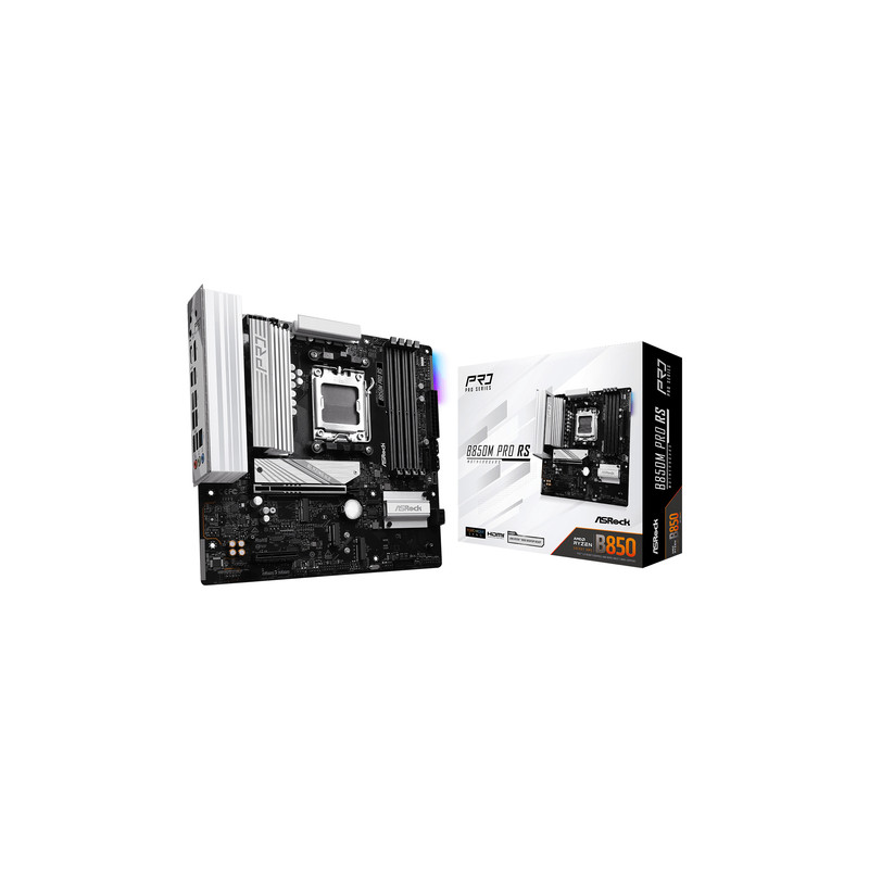 Asrock B850M Pro RS. Proizvođač procesora: AMD, Utor za procesor: Utor AM5, Kompatibilni procesori: AMD Ryzen 7000 Series, AMD Ryzen 8000 Series, AMD Ryzen 9000 Series. Podržani tipovi memorije: DDR5-SDRAM, Maksimalna količina interne memorije: 256 GB, Tip memorijskih utora: DIMM. Podržana sučelja pogona za pohranu: PCI Express 4.0, PCI Express 5.0, SATA III, Podržani tipovi pogona: HDD & SSD, RAID tipovi: 0, 1, 10. Maksimalna razlučivost: 3840 x 2160 pikseli. Tip USB poveznika: USB Tip-A, USB Tip-C