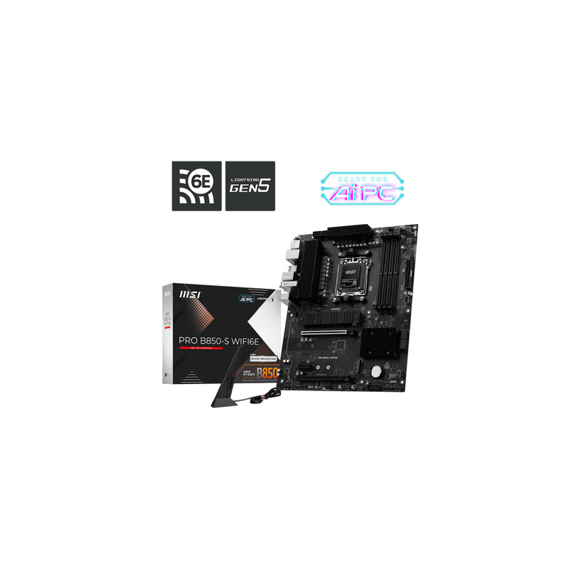 MSI PRO B850-S WIFI6E, AMD, Utor AM5, AMD Ryzen 7000 Series, AMD Ryzen 8000 Series, AMD Ryzen 9000 Series, DDR5-SDRAM, 256 GB, DIMM