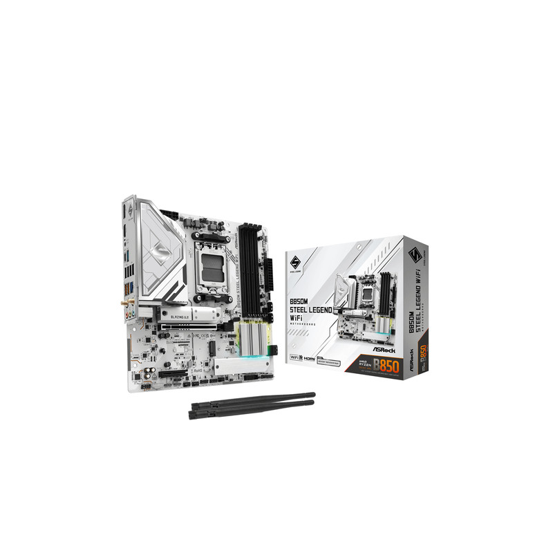 Asrock B850M Steel Legend WiFi, AMD, Utor AM5, AMD Ryzen 7000 Series, AMD Ryzen 8000 Series, AMD Ryzen 9000 Series, Utor AM5, DDR5-SDRAM, 256 GB