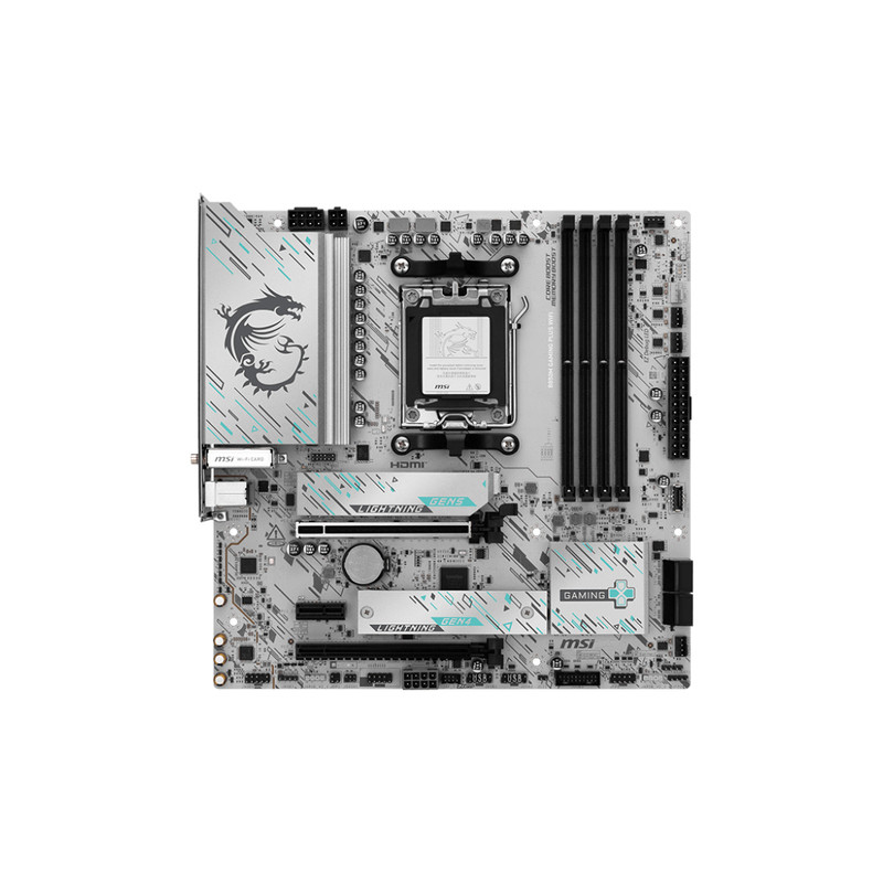 MSI B850M GAMING PLUS WIFI. Proizvođač procesora: AMD, Utor za procesor: Utor AM5, Kompatibilni procesori: AMD Ryzen 7000 Series, AMD Ryzen 8000 Series, AMD Ryzen 9000 Series. Podržani tipovi memorije: DDR5-SDRAM, Maksimalna količina interne memorije: 256 GB, Tip memorijskih utora: DIMM. Podržana sučelja pogona za pohranu: M.2, Podržani tipovi pogona: HDD & SSD, RAID tipovi: 0, 1, 10. Vrsta Ethernet sučelja: 5 Gigabit Ethernet, LAN kontroler: Realtek RTL8126, Vrhunski Wi-Fi standard: Wi-Fi 7 (802.11be). Komponenta za: PC/osobno računalo, Dimenzije matične ploče: Mikro ATX, Obitelj čipseta matične ploče: AMD