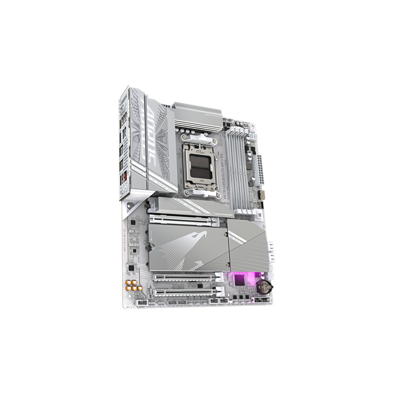 GIGABYTE X870 AORUS ELITE WIFI7 ICE. Proizvođač procesora: AMD, Utor za procesor: Utor AM5, Kompatibilni procesori: AMD Ryzen 7000 Series, AMD Ryzen 8000 Series, AMD Ryzen 9000 Series. Podržani tipovi memorije: DDR5-SDRAM, Maksimalna količina interne memorije: 256 GB, Tip memorijskih utora: DIMM. Podržana sučelja pogona za pohranu: M.2, Podržani tipovi pogona: HDD & SSD, RAID tipovi: 0, 1, 10. Maksimalna razlučivost: 4096 x 2160 pikseli, Model ugrađenog grafičkog prilagodnika: AMD Radeon Graphics. Vrsta Ethernet sučelja: 2.5 Gigabit Ethernet, LAN kontroler: Realtek RTL8125, Vrhunski Wi-Fi standard: Wi-Fi 7 (802.11be)