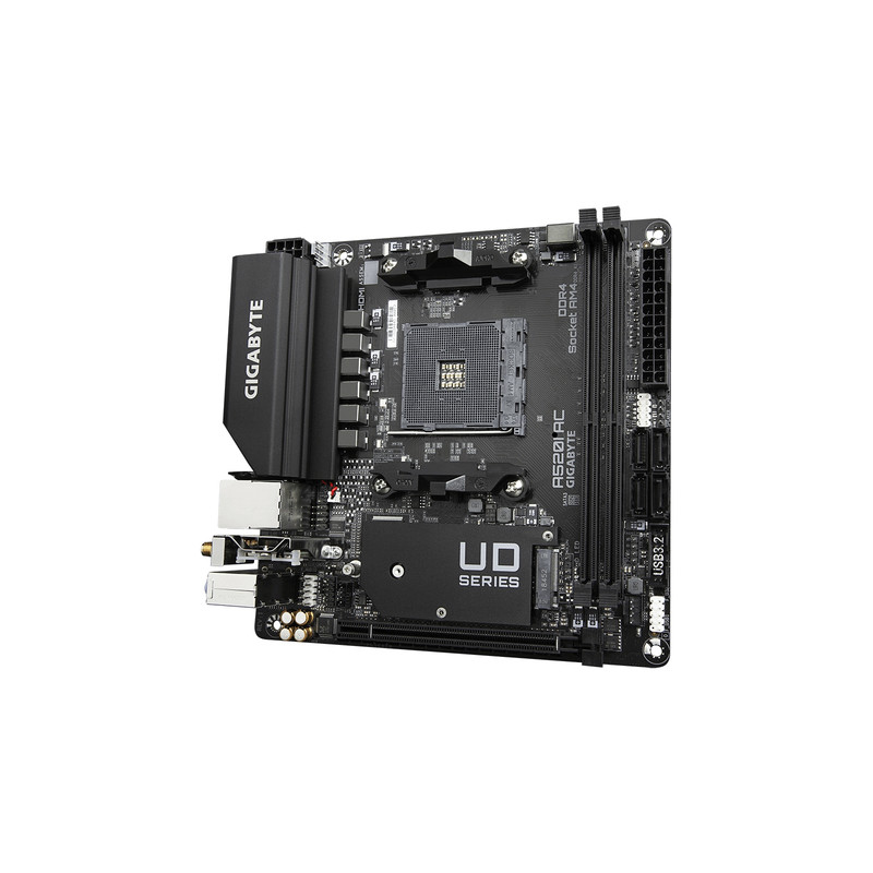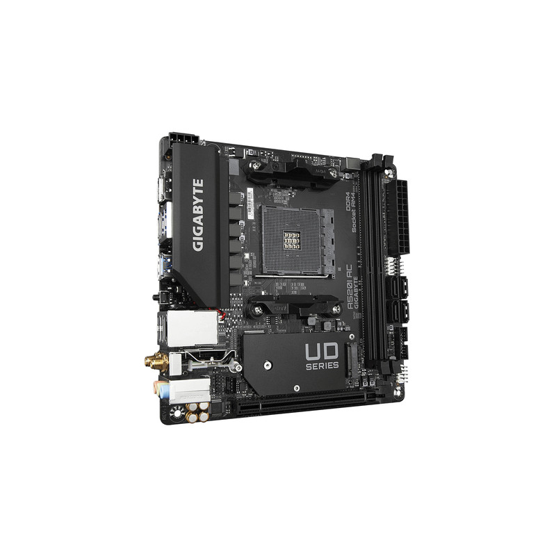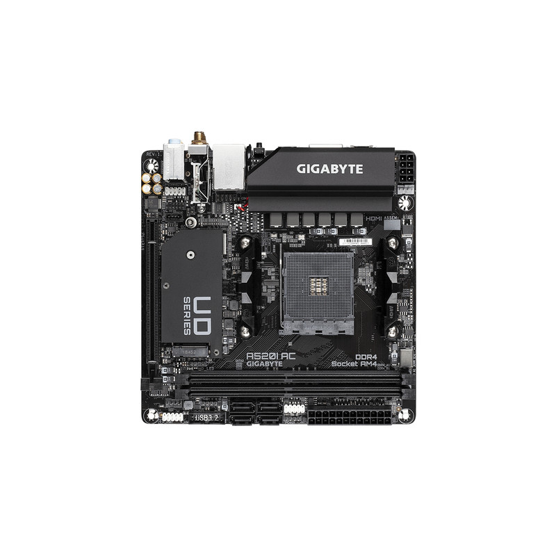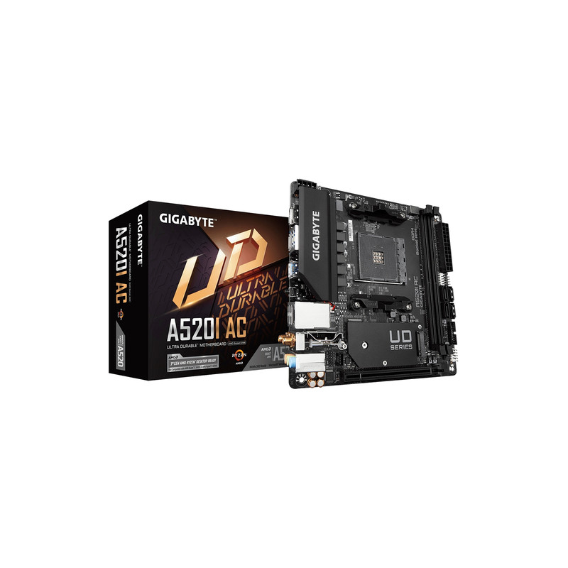 Gigabyte A520I AC. Proizvođač procesora: AMD, Utor za procesor: Priključnice AM4, Kompatibilni procesori: AMD Ryzen 3 3rd Gen, 3rd Generation AMD Ryzen 5, 3rd Generation AMD Ryzen 7, 3rd Generation AMD.... Podržani tipovi memorije: DDR4-SDRAM, Tip memorijskih utora: DIMM, Podržane brzine memorije: 2133,2400,2667,2933,3200,3333,3600,4000,4400,4600,4866,5000,5100,5200 MHz. Podržana sučelja pogona za pohranu: M.2, Serijski ATA III. Maksimalna razlučivost: 5120 x 2880 pikseli. Vrsta Ethernet sučelja: Gigabit Ethernet, Wi-Fi standarde: 802.11a,802.11b,802.11g,Wi-Fi 4 (802.11n),Wi-Fi 5 (802.11ac)