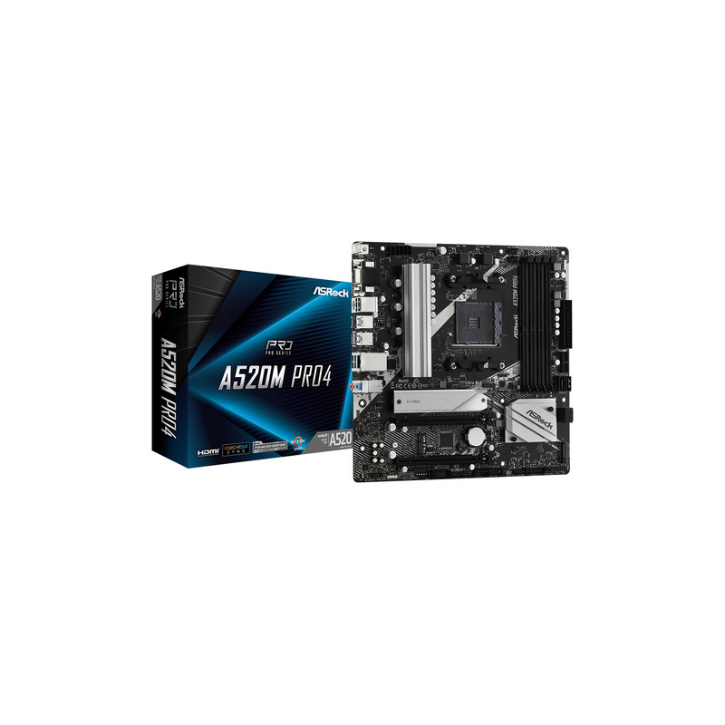 Asrock A520M Pro4, AMD, Priključnice AM4, AMD Ryzen 3 3rd Gen, 3rd Generation AMD Ryzen 5, 3rd Generation AMD Ryzen 7, 3rd Generation AMD..., DDR4-SDRAM, DIMM, 2133,2400,2667,2933,3200,3466,3600,3733,3800,3866,4000,4133,4200,4266,4333,4400,4466,4533,4600,4666