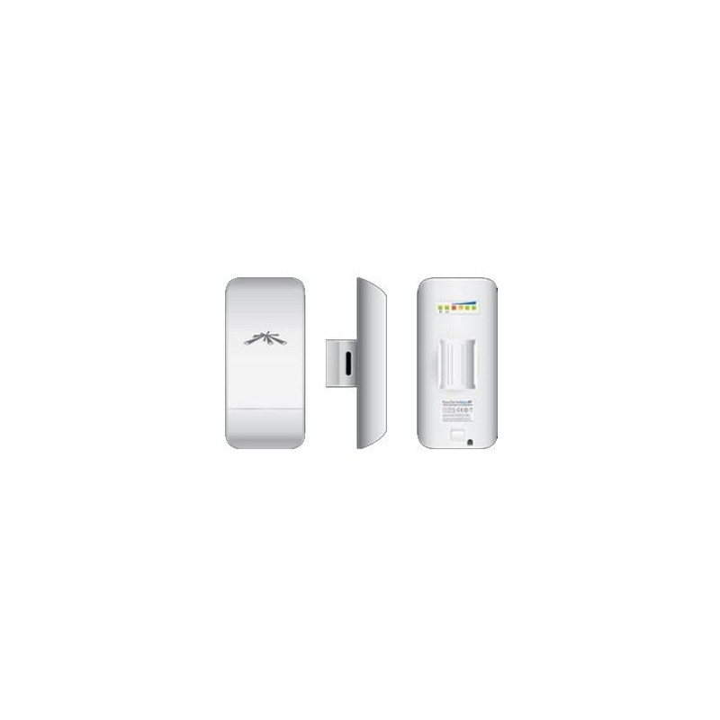 Ubiquity Networks NanoStationM LocoM2, 2,4Ghz 802.11b g n 23dBm(output power) Outdoor 8dBi(gain) Mimo CPE. Used as an Access Point, Client, or Bridge for Point-to MultiPoint, Point to Point or Wireless Client. Range is 5 KM. It is an 8dBi 2x2 Mimo Panel Antena with a 23dBm Integrated Wireless Radio. Dual Linear Polarity. 60 H-pol 60 V-pol. AirMax airOS software. Atheros MIPS 24KC, 400MHz CPU, 32MB SDRAM, 8 MB Flash, (1)10 100 Ethernet Port, Enclosure is Outdoor UV Plastic, Max Power Consumption 5.5W, Dimension 163x31x80, included 24V, 0.5A PoE Adapter, Pole Mount Kit Included