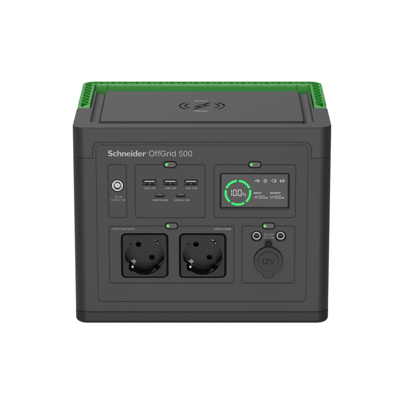 Schneider OffGrid Portable Power Station 500, 517Wh Lithium-ion, 2 Schuko, Sinewave