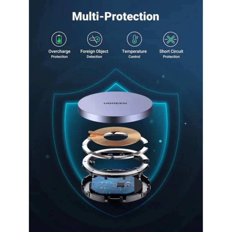 - UGREEN magnetski bežični punjač s savršeno raspoređenim magnetima pričvršćuje se na vaš iPhone 17/17 Pro/17 Pro Max, 16/16 Pro/16 Pro Max, 15/15 Pro/15 Pro Max 14/14 Pro/14 Pro Max, 13/13 Pro/13 Pro Max/13 Mini, 12/12 Pro/12 Pro Max/12 Mini i AirPodsi i osigurava brže bežično punjenje. Uređaj možete jednostavno postaviti na slobodne položaje, a bežični punjač će ubrzati vaš iPhone.