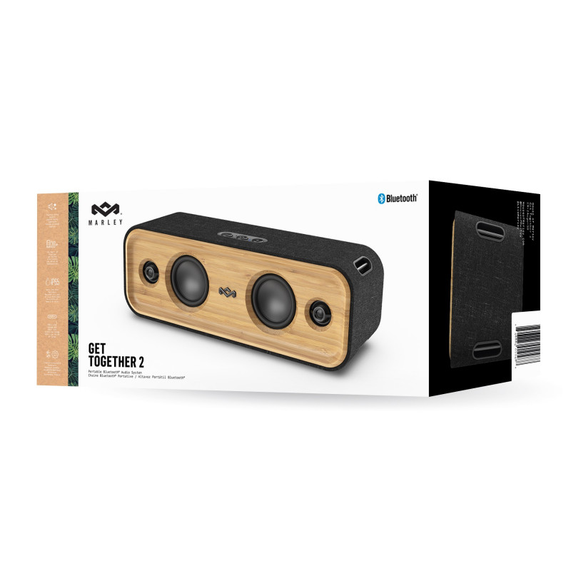 Get Together 2, član obitelji Get Together srednje veličine, pruža iznimnu jasnoću zvuka i zvuk bez premca za vrhunsko iskustvo slušanja. S trajanjem baterije od 20 sati, tehnologijom brzog punjenja i načinom rada s više parova, ovaj inovativni Marleyjev proizvod obećava kontinuirani zvuk - samostalno ili u kombinaciji s drugim zvučnicima Get Together 2. Zvučnik Get Together 2 otporan na prašinu i vodu bit će vaš vaš omiljeni suputnik kamo god pošli. Vjeran svojim korijenima, ovaj zvučnik je izrađen od prirodnog bambusa i reciklirane tkanine od plastičnih boca kako bi dao novi život starim materijalima. VRHUNSKI ZVUK Get Together 2 je projektiran za isporuku jasnog i preciznog zvuka gdje god se nalazili. Zajedno sa zvučnicima punog raspona i visokotoncima koji začinjaju vašu reprodukciju, ovaj zvučnik od 40 W ima Bass Boost, Acoustic i Marley Signature Sound EQ za maksimiziranje glazbe prema vašem ukusu. PUNJENJE I KOMPATIBILNOST S tehnologijom brzog punjenja i praktičnim USB-C priključkom za punjenje, Get Together 2 omogućuje vam uživanje u 20 sati reprodukcije za cjelodnevno slušanje. Bluetooth®5.0 tehnologija nudi domet od 30 m od vašeg uređaja, dok se ugrađeni mikrofon može koristiti za pozive kako biste ostali povezani – što ga čini idealnim dodatkom vašem kućnom uredu ili životnom prostoru. Kompatibilan s iOS-om i Androidom, ovaj zvučnik osigurava da ćete doživjeti klasični Marley zvuk – bez obzira kako se povežete. POGODNE KARAKTERISTIKE Napravljen za vanjsku upotrebu, ovaj prijenosni zvučnik je IP65 otporan na prašinu i vodu, tako da se možete opustiti uz bazen, na plaži ili na festivalu. Možete čak kombinirati više zvučnika iz Get Together 2 obitelji za potpuno novu vrstu surround zvuka. IZDRŽLJIVI MATERIJALI Podržavajući Marleyjevu poruku o majstorstvu i održivosti, Get Together 2 izrađen je od prirodnog bambusa, vrhunske REWIND® tkanine, REGRIND® silikona i aluminija. Ovaj zvučnik se isporučuje u pakiranju koje je 100% bez plastike i koje se može reciklirati. Svojstva Do 20 sati rada Način rada s više parova zvučnika Ugrađeni mikrofon Dinamičan i prenosiv Brzo punjenje i Bluetooth®5.0 tehnologija Bluetooth® domet od 30 metara Otporan na prašinu i vodu (IP65 certificiran) Bass Boost, Acoustic i Marley Signature Sound EQ Dimenzije: 33,4 cm x 11,7 cm x 10,3 cm REWIND® 1m USB-C na C kabel za punjenje USB-C priključak za punjenje Izrađen od održivih materijala (bambus, REWIND® tkanina, REGRIND® silikon i aluminij) Pakiranje 100% bez plastike koje se može reciklirati Kompatibilan s iOS i Android