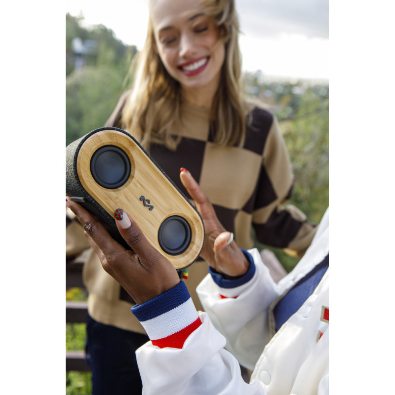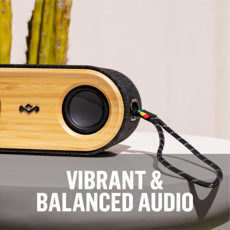 House of Marley Get Together 2 Mini pruža pun, bogat stereo zvuk, kompaktnu prijenosnu veličinu i pristupačnu cijenu. Uključujući više EQ-a - Marley Signature Sound, Bass Boost i Acoustic. Dodatna Multi-Pair tehnologija kombinira više zvučnika za veću snagu i zvučnu pokrivenost. Materijali Izrađen od bambusa, vrhunske REWIND™ tkanine te silikona i aluminija, Get Together 2 Mini bežični zvučnik utjelovljuje Marleyjevu poruku o majstorstvu i izdržljivosti. 20 vata Get Together 2 Mini ima 20 vata snage u malom i prijenosnom paketu, donoseći obilje zabave u pokretu. IP67 Otpornost na vodu i prašinu Bez obzira idete li na plažu ili zabavu uz bazen, možete biti sigurni da će Get Together 2 Mini biti zaštićen od vremenskih nepogoda. Bass Boost EQ Iskoristite prednosti zvuka kada ste vani ili unesite malo više basa na svoju zabavu uz više načina EQ. Ključne značajke Do 20 sati reprodukcije Kompaktan i prenosiv Vanjski način/pojačanje basa Multi-Pair tehnologija Bluetooth® 5.0 2 x 10 W zvučnika IP67 Otpornost na vodu i prašinu Brzo punjenje s USB-C Izdržljivi pleteni USB-C kabel Odvojivi remen za ručni zglob i kopča za uzicu
