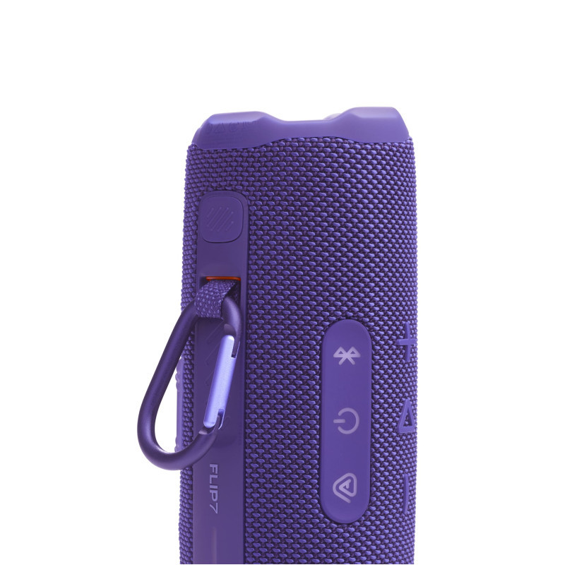 - Pojačali smo bas i prilagodili visokotonac. Rezultat? Snažan, jasniji bas čak i pri maksimalnoj glasnoći i oštre više frekvencije zahvaljujući pametnom novom dizajnu kupole visokotonca, što dodaje više dubine zvuku vašeg zvučnika. Također smo dodali našu novu vlasničku tehnologiju, AI Sound Boost, koja analizira vašu glazbu u stvarnom vremenu kako bi pružila maksimalne akustične performanse s manje distorzije. To je kao naš vlastiti mali audio duh u svakom Flipu 7. Dakle, sada vam možemo pružiti bolji sveukupni zvuk bez dodatnih kilograma. Ista veličina, veći udarac.