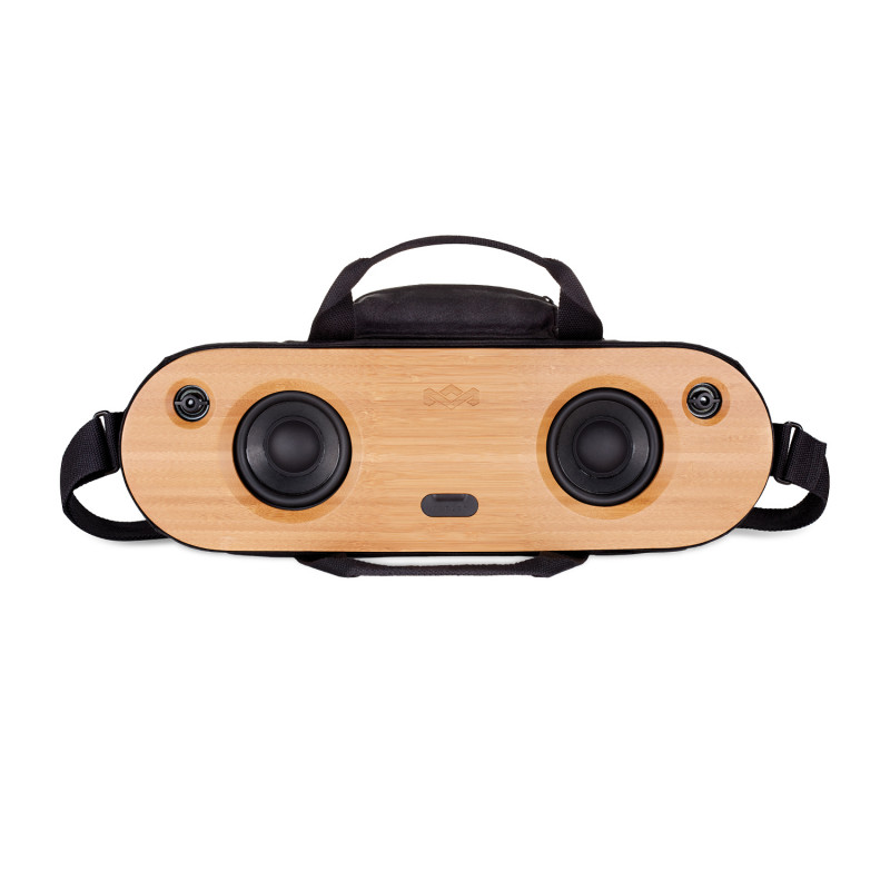 Ponesite zabavu sa sobom s prepoznatljivim crnim bežičnim Bluetooth zvučnikom The House of Marley Bag of Riddim 2. Ovaj prijenosni zvučnik opremljen je s dva subwoofera od 114,3 mm i dva visokotonca od 25 mm. Povezuje se s izvorima zvuka putem Bluetootha na udaljenosti do 15 metara ili s audio priključkom od 3,5 mm. Okvir zvučnika izrađen je od drveta breze s certifikatom FSC, a njegovo ekološki prihvatljivo kućište izrađeno je od reciklirane plastike. Pored toga, naramenica i torba za nošenje izrađeni su od ekskluzivne House of Marley REWIND tkanine. TEHNIČKI PODACI Izlazna snaga Maksimalno 40 W Zvučnik 2 x 25 mm visokotonca, 2 x 114,3 mm visokotonaca Podržani A2DP Bluetooth profili Podržani audio kodeci aptX Bežično područje 15 m 1 x 3,5 mm stereo (audio) ulazi Litij-ionski tip baterije AC ulazna snaga 100 do 240 VAC, 50/60 Hz Utor za memorijsku karticu br. Materijal Tkanina, plastika, drvo