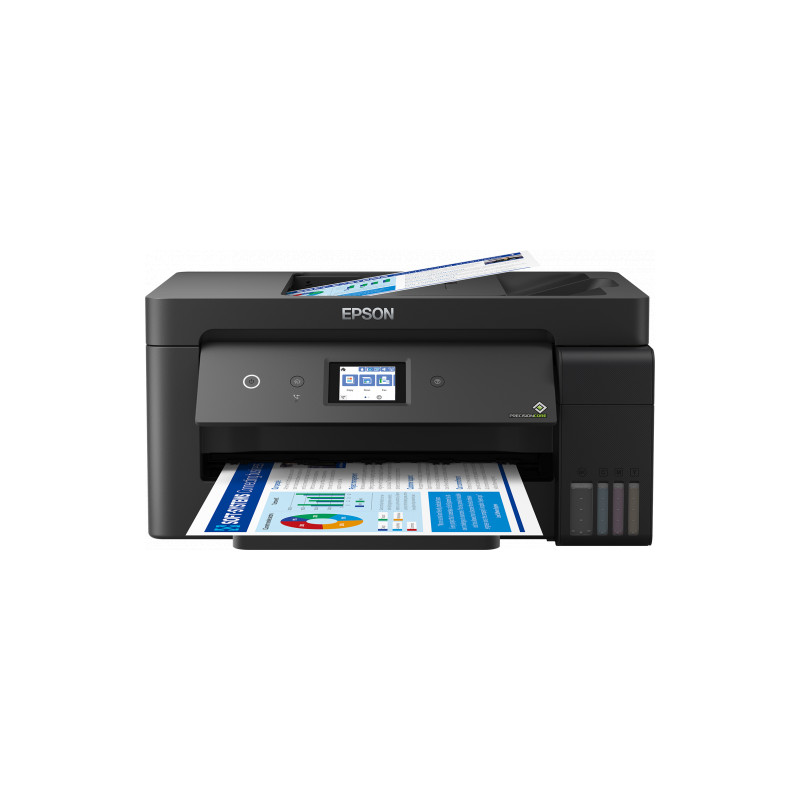 Tražite li kompaktan i ekonomičan pisač u boji za ispisivanje u formatu A3? Pisač L14150 dokazat će vam da je to moguće. Ovaj pisač EcoTank pruža ispisivanje, skeniranje, kopiranje i slanje telefaksa u formatu A4, kao i mogućnost ispisa u formatu A3 putem stražnjeg ulaza za medije – sve to po iznimno niskom trošku po stranici. Poslovi se mogu brzo obavljati zahvaljujući velikim brzinama ispisa i skeniranja, prednjem pretincu za papir kapaciteta 250 listova i ADF-u kapaciteta 35 listova formata A4.