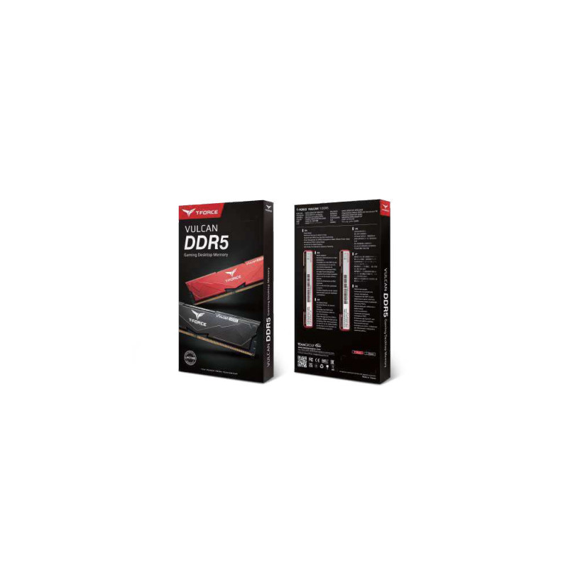 Team Group VULCAN FLBD532G5200HC40C01. Komponenta za: PC/osobno računalo, Interna memorija: 32 GB, Raspored memorije (moduli x veličina): 1 x 32 GB, Vrsta interne memorije: DDR5, Radni takt memorije: 5200 MHz, Format memorije: 288-pin DIMM, CAS latencija: 40