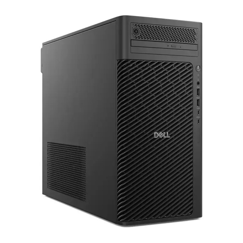 CPU: Intel Core Ultra 7 265 (30 MB cache, 20 cores, 20 threads, 1.8 GHz to 5.3 GHz, 65W) Chipset: Intel W880 RAM: 32GB (2x16GB), DDR5, 5600 MT/s, non-ECC Up to 128 GB Hard disk: 1TB SSD TLC with DRAM M.2 2280 PCIe Gen4 SED Ready DVDRW: 8x DVD+/-RW 9.5mm optical drive Video: NVIDIA RTX A400, 4 GB GDDR6, 4 mDP to DP adapters Audio: Realtek ALC3204 Network: Intel i219-LM Gigabit network adapter (10/100/1000) WLAN: Intel(R) Wi-Fi 6/7 BE200, 2x2, 802.11be, MU-MIMO Bluetooth: Bluetooth 5.4 I/O slots: 4x SATA 3.5-inch HDD/ODD 2x M.2 2230/2280 PCIe Gen4 slots 1x M.2 2230/2280 PCIe Gen5 slot 1x PEG full-height Gen5 PCIe x16 slot 1x full-height, half-length Gen3 x4 PCIe closed-end slot 1x full-height, full-length Gen4 x4 PCIe open-end slot 1x full-height, full-length Gen3 x4 PCIe open-end slot I/O ports: Front: 1x USB 3.2 Gen 1 (5Gbps) port 1x USB 3.2 Gen 1 (5Gbps) port with PowerShare 1x USB 3.2 Gen 2 (10Gbps) Type-C port 1x USB 3.2 Gen 2x2 (20Gbps) Type-C port with PowerShare 1x Global headset jack 1x SD 7.0 Express-card slot Rear: 2x DisplayPort 1.4a HBR3 ports 2x USB 2.0 (480Mbps) ports with SmartPower 2x USB 3.2 Gen 2 (10Gbps) ports 1x USB 3.2 Gen 2x2 (20Gbps) Type-C port 1x RJ45 (1GbE ) Ethernet port Chassis: Full-size tower Power supply: 360W internal power supply unit (80PLUS Platinum Certified) Keyboard: Dell Wired Keyboard - KB216 - Adriatic (QWERTZ) - Black Mouse: Dell Optical Mouse-MS116 - Black OS: Windows 11 Pro