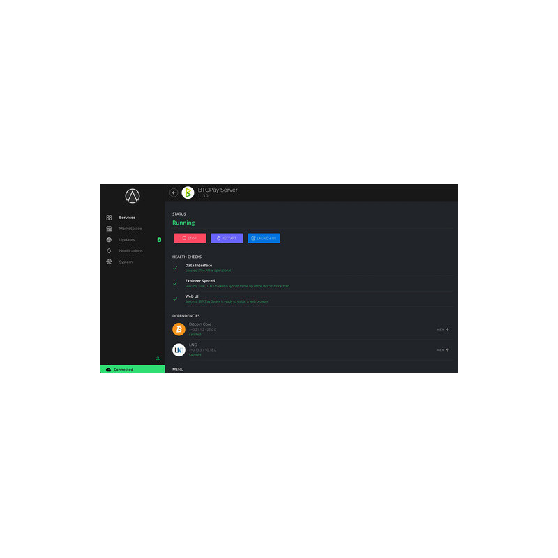 Start9 Server One vam omogućuje jednostavan i pouzdan rad kao Bitcoin čvor. To vam omogućuje izravno sudjelovanje u Bitcoin mreži, osiguravajući sigurnost transakcija i provjeravajući blockchain bez oslanjanja na treće strane. To povećava vašu privatnost i sigurnost prilikom korištenja Bitcoin mreže.