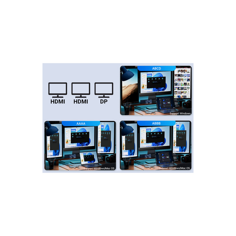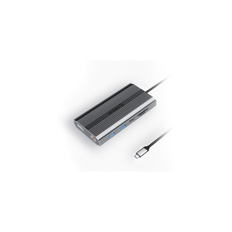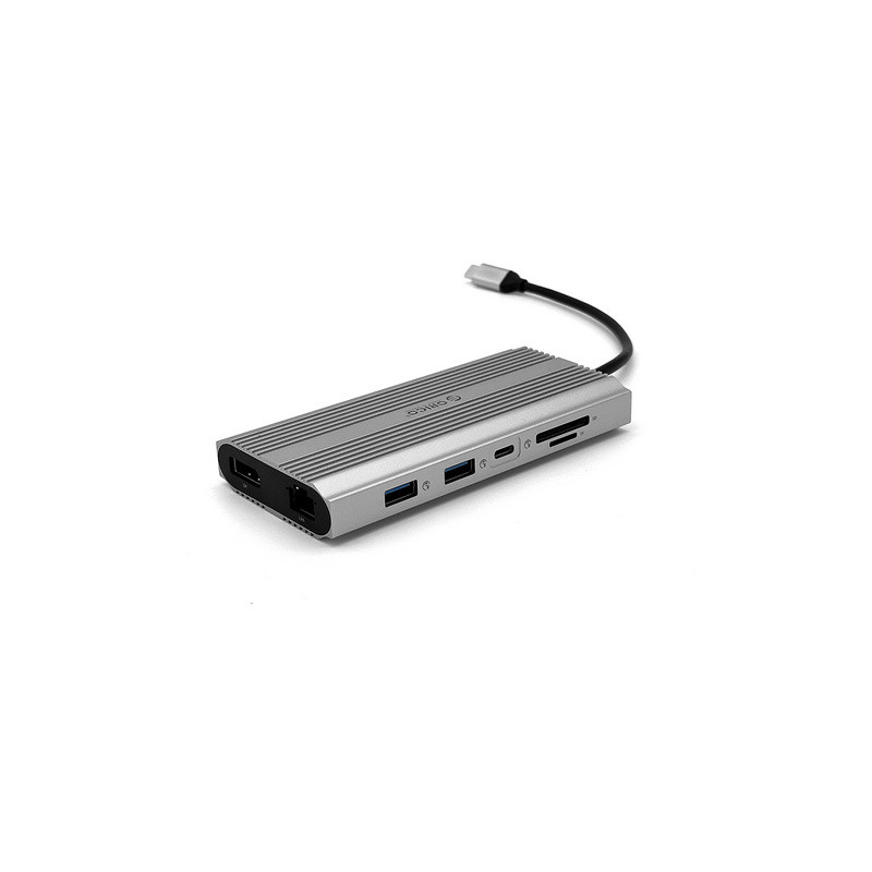 USB-C 12 v 1, 1x USB-C 3.1, 3x USB-A, USB-C PD100W, 2x HDMI 4K@60Hz, DP 4K@60Hz, SD+TF, RJ45, AUX, Alumini