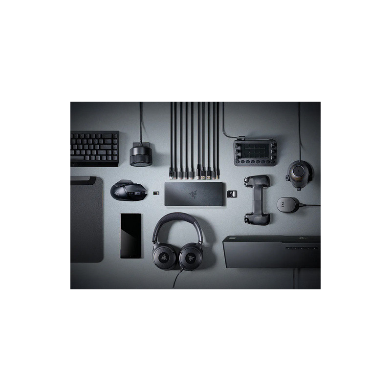 Razer Thunderbolt 5 priključna stanica pruža vrhunsko proširenje povezivosti s jednim USB-C priključkom. S Thunderbolt tehnologijom postiže brzine prijenosa od 120 Gbps i podržava istovremeno povezivanje više monitora i uređaja.