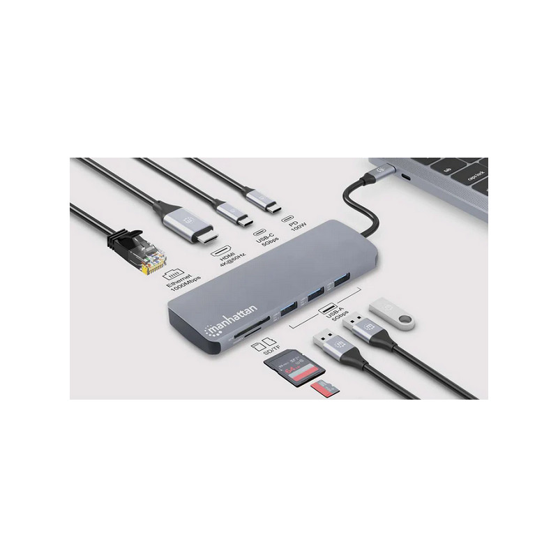 Manhattan docking USB-C 9 u 1 HDMI 4K@60Hz